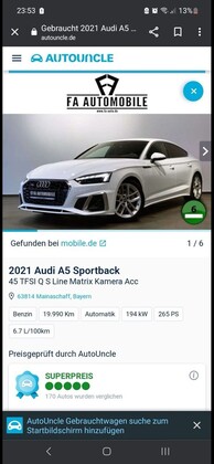 Der Wagen hat EZ 05.2021. Keine Beschädigungen, Wartungen bei Audi, sehr wenige Fahrleistung, keine Standschäden.... mehr erfahren
