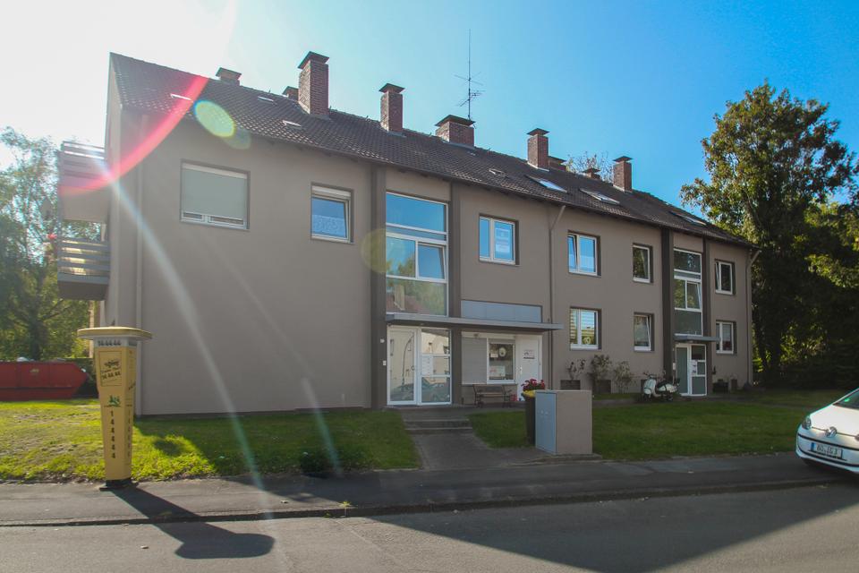 Die renovierte 3,5-Zimmer-Wohnung liegt im Erdgeschoss eines gepflegten Mehrfamilienhauses mit Zugang zum Gemeinschaftsgarten.